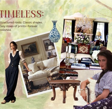 This category draws heavily from aristocracy, featuring luxurious materials such as velvet and satin. It includes ornate wooden furniture, expansive libraries, or large built-in bookcases, alongside elegant oil paintings. This element embodies the Luxe aesthetic.