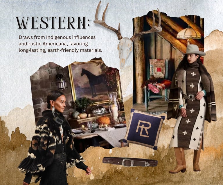 Let’s map the decor into three pillars—western/nature, preppy, and elegant—so each piece has a clear place and purpose. After all, the Ralph Lauren look is very curated.